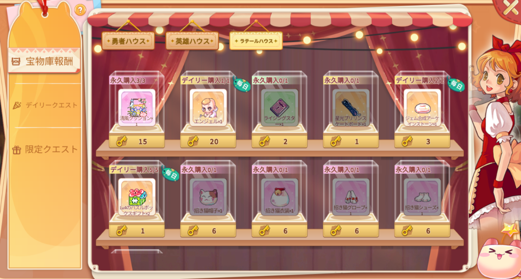 「清風クッション」は宝物庫金鍵15個で交換できます。