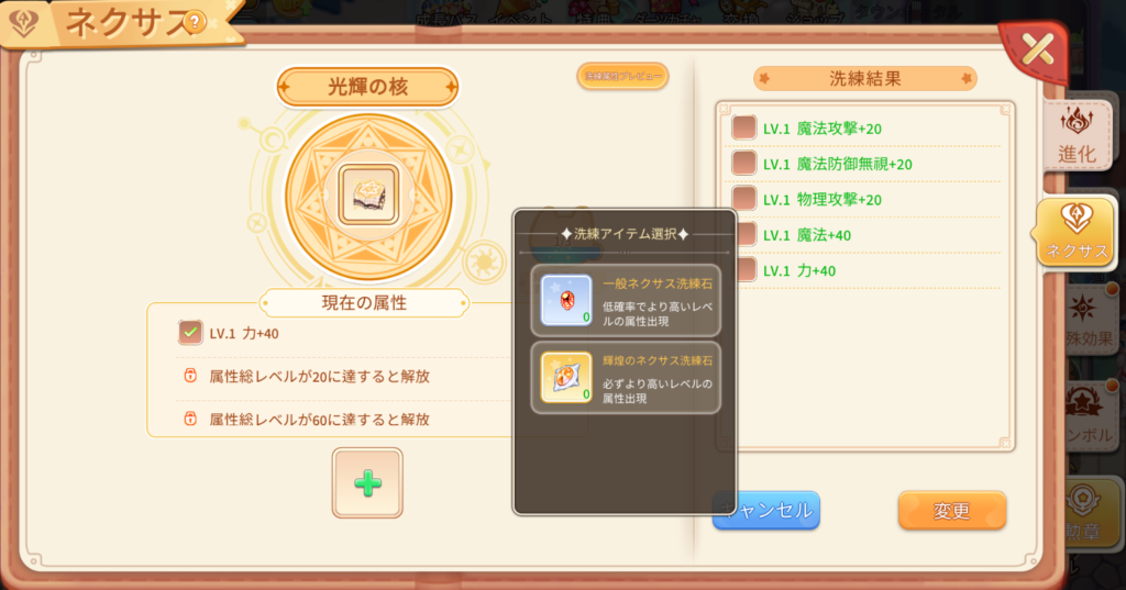 4)任意の属性を選択して洗練すると、現在と同等またはそれ以上の属性を獲得できます。