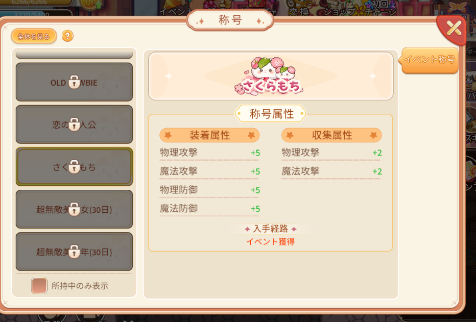 新規称号「さくらもち」が追加されます。